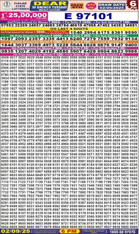 Punjab State Dear 50 Bronco Tuesday Weekly Lottery Result 02/09/25