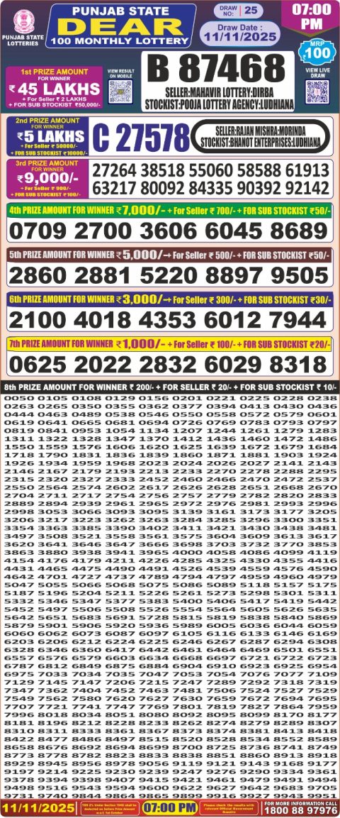 Punjab State Dear Diwali Bumper 2025 Lottery Result The official Punjab State Lottery draw for the Dear…